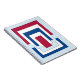 Rektanglar och rektangulära former i det patriotiska färgen av rött, vitt och blått utgör grunden för denna ursprungliga abstrakt/geometriska grafik av Richard H. Fay.