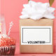 Black Blank Volunteer Namn bricka med titeln "Frivillig" i svart fet sans serif-teckensnitt med tomt utrymme för ditt namn på vit bakgrund med svart gräns. Perfekt för praktikant, besättning, personal, grupp, team med mera.