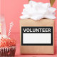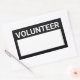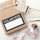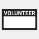 Black Blank Volunteer Namn bricka med titeln "Frivillig" i vitt fet sans serif-teckensnitt med tomt blanksteg för ditt namn på svart bakgrund. Perfekt för praktikant, besättning, personal, grupp, team med mera.