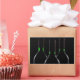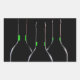 En silhuett med tre svarta vin flaskor med grönt etiketter som glöder i mörken.