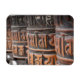 Rektangulär fotomagnet med brass buddhist prayer hjul closeup i templet Swayambunath i Katmandu, Nepal.