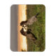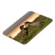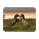 Rektangulär fotomagnet med två prancing vild Konik-hästar vid solnedgången i nationalparken Oostvaardersplassen i Nederländerna.