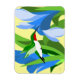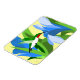 Blåblommor och hummerfågelkonst med gult bakgrund på böjliga magneter