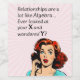 Lägg till lite med och humor när du eller en vän firar nyvunnen självständighet med den här smarta teckningen bok-stil i tecknad 1950. Med en kvinna som inspirerats av vintagen, citatet "Relationer är mycket som Algebra..". Har du någonsin sett ditt x och y?" ger ett giftigt epifany, teckning en humoristisk analogi mellan matematik och mystik av relationer. Med sin retro-charm och perfekt kokt hår är hon en blandning av sass och insikt som är perfekt för att reflektera över livets vrider och vrider. Biet är idealiskt för alla som navigerar i skilsmässa, sönderfall eller dejtingsvärlden. Det är ett snabbt sätt att fira nyvunnen självständighet, ta roligt på tidigare relationer eller ett skratt med någon som har varit där. Citatet binder till algebra, och hänvisar glatt till hur du är en funktion av x - för ibland får du i din ex-verkligen frågan varför! Perfekt för skilsmässa mellan firande, humor, eller bara för att omfatta det moderna kärlek, gör denna teckning ett djärvt påstående med stil och humor.