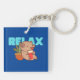 Den här fina nyckelkedjan har en tecknad capybara sitta i en orange bredvid en grönt. Kapybara håller ett rött bok och visas innehåll, med ord "RELAX" ovanför det i fet, ljusblå brev. Den här nyckelkedjan är perfekt för kapybara älskare och dem som har en avslappnad, bokaktig vibe. Den är gjord av material av hög kvalitet och är ett snyggt och hållbart tillbehör till nycklar, väska eller ryggsäck.