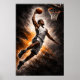 The dramatic low-angle perspective enhances the sense of height and dominance, while deep shadows and fiery orange energy create a bold cinematic atmosphere. Every detail—from the extended arm to the intense gaze—reflects determination, control, and the relentless drive to rise above.