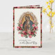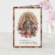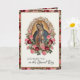 Med en vacker traditionell katolsk religiös bild av den saliga jungfru Maria, Vår Fru av Guadalupe med röda och rosa rosor. En bibelvers finns på insidan med den anpassningsbara versen. All text och typsnitt kan ändras för att passa tillfället och mottagaren.