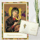 Detta är en vacker traditionell katolsk religiös bild av den saliga jungfru Maria, vår Moder till ständig hjälp med en rosor dekorativ kant. Inuti finns ett bysantinskt ortodoxt kors med en överlagd bukett blommor. All text och typsnitt kan ändras för att passa tillfället och mottagaren.