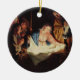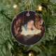 Denna runda som den keramiska julen semestrar prydnaden, har en paiting för vintage av julkrubban. Jesus lägger i mangeren med Mary och Joseph som tittar över honom.