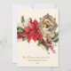 Med en vacker guldbild av den saliga mor Maria och Jesusbarnet överlagd på en röd poinsettia blomsterkrans. Jesu Marias och Josefs heliga hjärtan finns på baksidan. All text och typsnitt kan ändras.