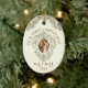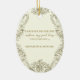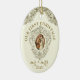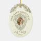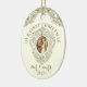 Bild en elegant ovala julprydnad med tidlös och traditionell katolsk vintage bild. Biet fångar helig-ögonblicket för den välsignade Jungfru Mary och St. Joseph's giftermål, inneslutna i en vintage i Lustrous guld ram. Det känsliga mönstret framkallar en känsla av vördnad och ära, skapar det ett vackert tillägg till Julgran. Vrid på dekoratet och på motsatt sida fortsätter magin. Ett vackert skript-versaler - Sång i Solomon 3:4 - lägger till en poetisk beröring till prydnadens design. Denna manusförfattare, firande i kärlek och devotion, höjer ornamenten till andlig skönhet. Den nyklippta namn ligger också på baksidan och skapar extra speciellt. Denna personlig blir en symbol för parets union, som erbjuder en blandning av elegans, tradition och religiösa för att prygla deras firande som jul.