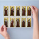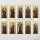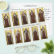 Religiösa karmelitiska målningar från Sanctuary of Our Lady of Mount Carmel katolska kyrkan i Kenosha Wisconsin. KARMELITISKA HELGON St. Elizabeth av Treenigheten, St. María Maravillas de Jesús, St. Maria Magdalena de' Pazzi, St. Teresa av Avila, St. Therese av Lisieux, Bl. Titus Brandsma, St. Johannes av Korset, St. Teresa av Anderna, St. Mariam av Jesus den korsfästa, Lille araben och Lili av Palestina St. Teresa Benedicta av Korset Bön till Vår Fru av berget Karmel på baksidan. All text och teckensnitt kan ändras.