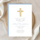 Religiösa Kor Baby blue Script Boy Baptism Inbjudningar