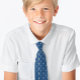 En elegant religiösa mönster slips som har som mönster en gång kor från faux silver på klassisk blå bakgrund och som rekommenderas för en pojkes första bekräftelse av gemenskap eller religiösa.