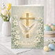 Med en vacker traditionell bön som framförs under fastetiden före påsk under Korsets stationer. Denna text finns på en vintagebakgrund av liljor med en bild av korset och den Helige Ande. Insidan innehåller också ett kors och en blomsterdesign med en skriftvers.