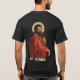 Texten "St. James har min rygg" står på framsidan. Baksidan har en traditionell katolsk bild av St. James Apostle.