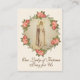 Med en vacker religiösa av designad vintage i anpassningsbar av vår Fatima-Dam med rosa ros och en vacker bön på baksidan.