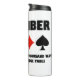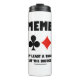 Have you gone down horribly at the bridge table, on the order of -400, -500, -800, etc.? Let your wry bridge player side shine the next time you drink from this thermal tumbler featuring the four card suits along with the following reminder saying to any bridge player who engages in risky bidding behavior or poor play: "Remember There Are At Least A Thousand Ways To Die At The Bridge Table". No need to be an avid bridge player or bridge teacher to enjoy this sound reminder that bridge is a humbling game indeed!