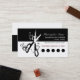 Coolan skräddarsy den svartvita visitkorten med sax för cosmetologists och hårstylister. Befordrings- lojalitetskönhetsalong. Yrkesmässig visitkort för svartvit saxillustration med svartvit kontrastera bakgrund.