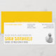 En inbjudan till den enkla, moderna kvinnan. Ett fotografi av en gummidamm tillför kitsch till den här rena barnduschinbjudan och den ljusa gulten ger stollig. Finns i alternativa färger med matchande favors och porto.