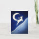Vinterkort. Vit ren flygande över en snötäckt kulle med en halvmåne i bakgrunden. Tomt på insidan. Perfekt för julhälsningar, vinterhälsningar eller bara för att skicka till djurälskare!