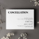 Ett svart-vitt bröllopsavbokningsmeddelande i en ren, minimalistisk, saklig design för att informera dina gäster om att bröllopet inte kommer att äga rum.