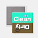 Enkelt sätt att se om diskarna är rena eller smutsiga. Förhindra förvirring om diskar med hela familjen! Den blå soapybubblan på den rena sidan med brunt splotchy smutsat lera på den smutsiga sidan. Cute Graphics inslag perfekt för det moderna köket eller contemporaryn stil. Underbar gåva till en hemmakare, hemmafru eller domestic-diva!