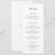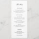 Klassiskt bröllopsmenycard med titeln i ett elegant skrivstil och resterande text i ett traditionellt serifferat teckensnitt.