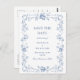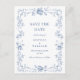 Elegant Vintage Blått Fransk Garden Blommigt Bröllop spara datum vykort.
