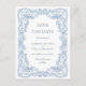 Elegant Vintage Blått Fransk Garden Blommigt Bröllop spara datum vykort.