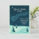 En inbjudan till julfest med en vintageillustration av tomten i sin släde dragen av hans renar. Små stjärnor på natthimlen. Snötäckta tallar på marken. Vintage retro-känsla.