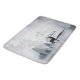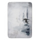 Ett badmatt med en vattenfärgsbild med en svart silhuettrenar som står mellan vissa gräs träd. Grått Black and white neutralt färg.