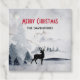 märkre i god jul med en vattenfärgsbild med en svart silhuettrut som står bland vissa träd i gräs. Grått Black and white neutralt färg.