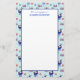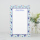 Personlig stationär papper med ett upprepande mönster. Illustrerad med ett par blå skandinaviska hjortar med röda halsdukar. Med dekorativa markeringar på kropparna. Förutom en trio rött och blått julgranar med en stjärna på toppen. Finare snöflingor sprinklade runt.