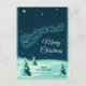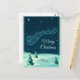 En God jul Julhälsningar vykort med en vintage illustration av tomten i hans sligh som dras av hans renar. Små stjärnor sprinklar natten himlar. Snö täckte gräs träd på marken. Känn vintagens återtro. Personlig namn på framsidan och personligen på baksidan.