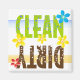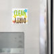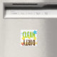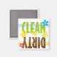 Den här disktvättermagneten är digital illustration och textdesign. Rena är i ren kalkgrön och Dirty är i mörk brun.