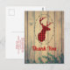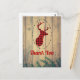 Festlig tack-kort med rustik stil. Designad med ett renhuvud med horn, gjort av röd karoräta. En fin oval ram omger bilden. Falska träplankor ger den en lantlig känsla.