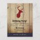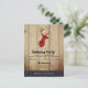 Inbjudan till födelsedagsfest med rustik stil. Designad med ett renhuvud med horn, gjort av rött rutmönster. En fin oval ram omger bilden. Falska träplankor ger den en lantlig känsla.