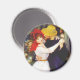 Renoir Dance på Bougival magnet. Oljemålning på arbetsyta från 1883. En av Pierre-Auguste Renoirs vackra dansparentsmålningar, Dance på Bougival skildrar ett par som dansar utomhus vid en sommartid-picknicke. Kvinnan bär en vit land klänning och en röd bonnet, mannen bär en blå kostym och gult hatt. En söt gåva till fläkt av Renoir, dans, romantiskt par och Fransk.