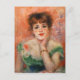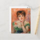 Renoir Jean Samary i ett vykort med låg nos. En av Renoirs mest charmerande porträtt, hans bild av Jeanne Samary, har den vassa använda av rosa och grönt som kännetecknar konstnärens bästa verk. Det unga röda huvudet lutar mot tittaren, chin in hand, med ett lätt leende och ljusglimt av hennes blå ögon. Den grönt hon bär accentuerar hennes axlar och visioner. En underbar gåva till fläkt av Pirre-Auguste Renoir, imponering, berömd porträtt och Fransk konst.