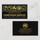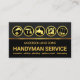 Ett grått- och svart hölje har fem guld-ikoner för handyman- och omformning som representerar en del av det arbete du kan erbjuda, t.ex. kan borrbandet stå för renovering, borste för målning, veken för rörmokeri, tvätta maskin för elektriska reparationer och spadgaffeln för landskapslandning-. Mot svarta lagrar under är namn, dess arbetsnamn "HANDYMAN SERVICE" och en lista över tjänster som du kan byta till. På andra sidan, i ett svart täcke, ligger en logotyp i guld i hemlandskapet som du kan använda på högst upp. Detta följs av er prestigefyllda namn, kontaktinformation och ett sloganalternativ för att publicera dina tjänster. Alla bokstäver är i Faux guld. Ett kort för underbar professionell för byggnads- och handyman. #handyman #constuctionhandyman #homerepairentreprenör #building #building #remodeling #handymanTools #buildentreprenader #homerepair #interiordesign #zazzlemade