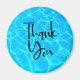 Tack, magnet med ett foto av tydligt blått bassäng vatten, med skakande reflektioner.