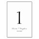 Det här bordsnumret i bröllop har ett rent, minimalistiskt stil, med ett stort fet nummer i mitten med kursiv elegant under det och en liten rad enkel sans-serif-text vid grund, som alla ställs mot en vit bakgrund för ett minimalistiskt och sofistikerat utseende.