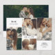 Dubblan sparar datumkortet med en ren kollage av fyra foton på ena sidan med datum för initialer och bröllop och ett större foto på den andra med mer information om bröllop. Modern sparar datumkortet med en minimalistisk utformning, elegant typsnitt och en fotokollage. Vit spara datumkortet med en ren fotodesign, initialer och bröllop-datum i svart typsnitt.