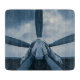 Närbild på propellrarna på det lilla kolvmotordrivna flygplanet mot en mörk mulen himmel. Rensa prop! Nu kör vi! Aviate, Navigera, Kommunicera!
