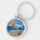 Målningen visar en glimmerande orange som surfar ängel på ett blått hav med ett mousserande sol. Havsskummet tvättar upp på sand som omger ord "Snäll ut cancer". Det finns en rosa snäcka på stranden. Målningen gjordes i akryl och sprinklades med glitter för struktur och skinn. Anpassa den här nyckelkedjan med ditt eget bilder och dina meddelanden med hjälp av knappen "Anpassa den".