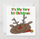 En bedårande babys 1:a juldesign på första julen T-shirts, bodys, magneter, kort, klistermärken, souvenirprydnader och mer med en söt rensdyrdesign och röd och grön text som lyder Det är min allra första jul!