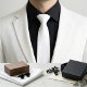 Gör ett djärvt intryck med subtilitet — den rena vita slipsen från Tailor_Shop är renhet och raffinerad stil förkroppsligat. Perfekt för bröllop, examina eller andra formella tillfällen, denna knäppglatta vita slips tillför en touch av klass till vilken kostym eller smoking som helst. En bra slips som ser perfekt ut som kontrast till mörka skjortfärger. Skräddarsydd för den moderne mannen som värdesätter tidlös elegans, är det ett måste-att-ha tillbehör som talar volymer utan att säga ett ord. Ren. Enkel. Skarp. Oförglömlig.