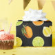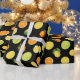 En uppfriskande, smakfull mönster som består av citrusfrukter som citroner, orangar, tangeriner, grapefrukter i olika former och storlekar, från hela frukter och löv till skivor i nyanser av grönt, kalk, gult och orange. De ursprungliga fruktfilerna är offentliga och den digitala omarbetningen från rawpixel.com Du kan redigera bakgrunden (svart) färg.