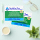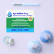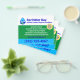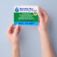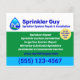 Enkel vektorbaserad logotyp i blått och grönt av gräsmatta sprinkler-sprejning vatten på gräsmatta innesluten i vatten fallkontur.